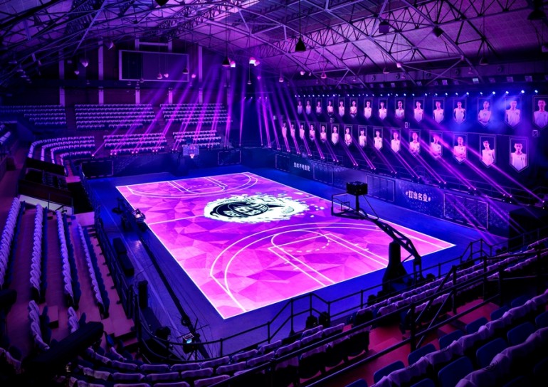 Nike ha creato questo enorme campo da basket con tecnologia touch-sensitive LCD. Il campo ha dei sensori di movimento incorporati che tracciano individualmente ogni movimento di ogni singolo giocatore presente.