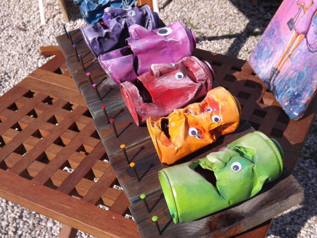 “Da piccolo, quando finivano i biscotti, recuperavo le confezioni e le trasformavo in autobus per i miei pupazzi, quindi credo che riutilizzare e riciclare sia quello che ho sempre portato dentro di me. A casa la mia famiglia ha sempre fatto mestieri manuali per cui è qualcosa che io ho sempre visto fare. Non ho mai smesso di pitturare o di trasformare le cose, mi piace dipingere, fare sculture, lampade, quadri, ecc… Ora non riesco a smettere di creare cose.”